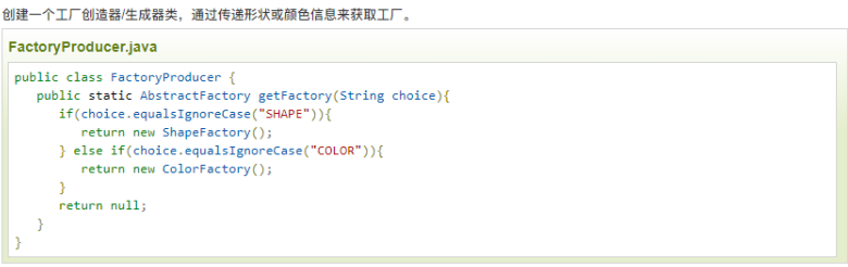 我们要选择一件衣服的样式,首先要选择要去形状工厂还是颜色工厂,因此我们需要一个工厂创造器来生成我们需要的工厂,如下