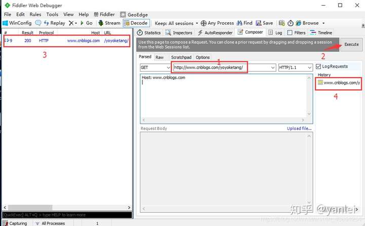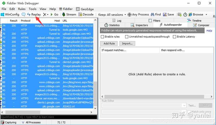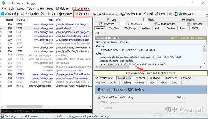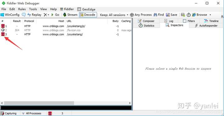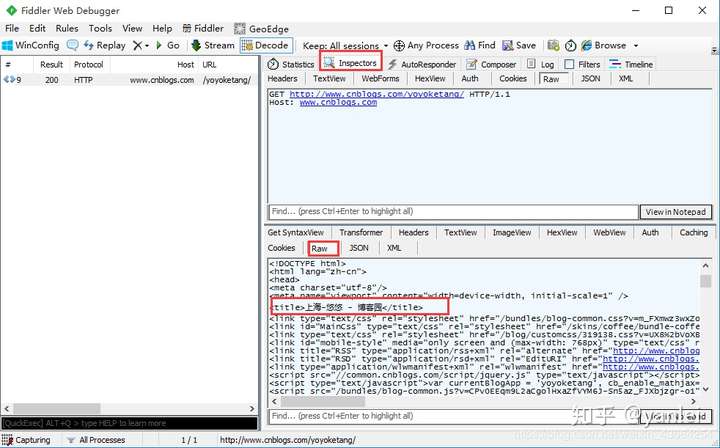 1.打开fiddler工具,然后浏览器输入博客首页地址:http://www.cnblogs.com/yoyoketang/