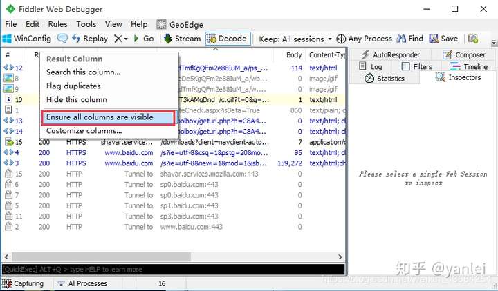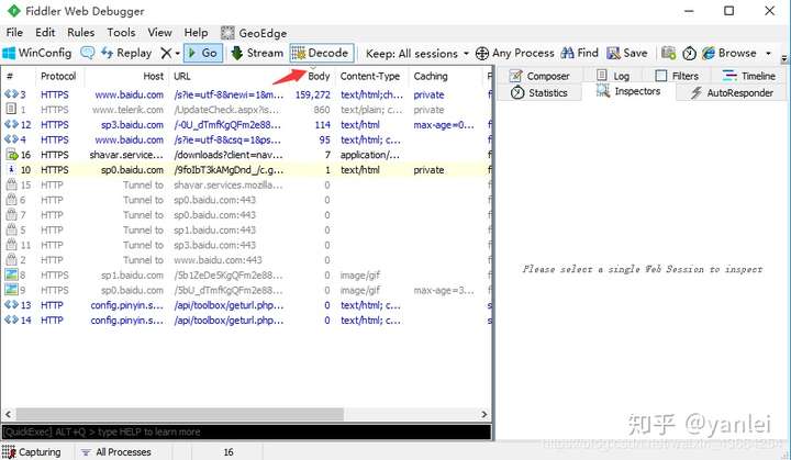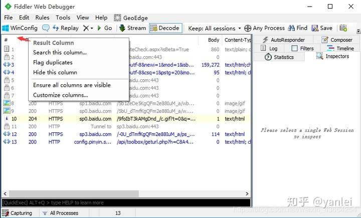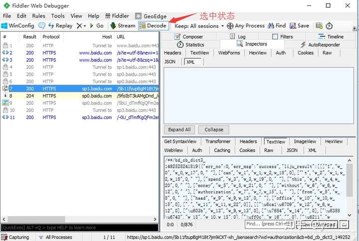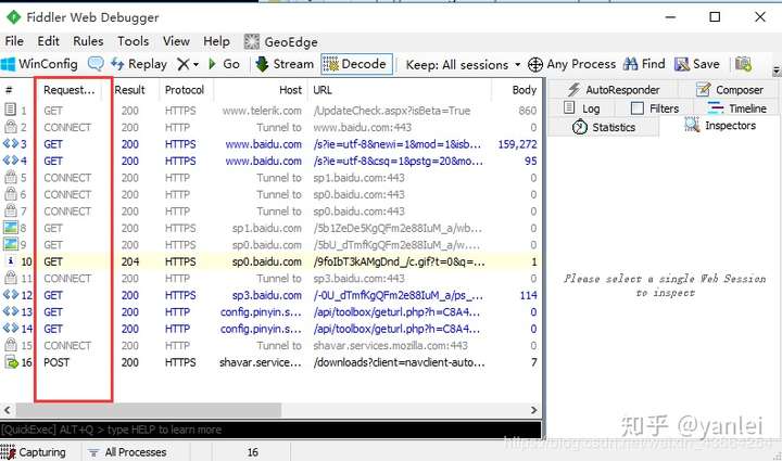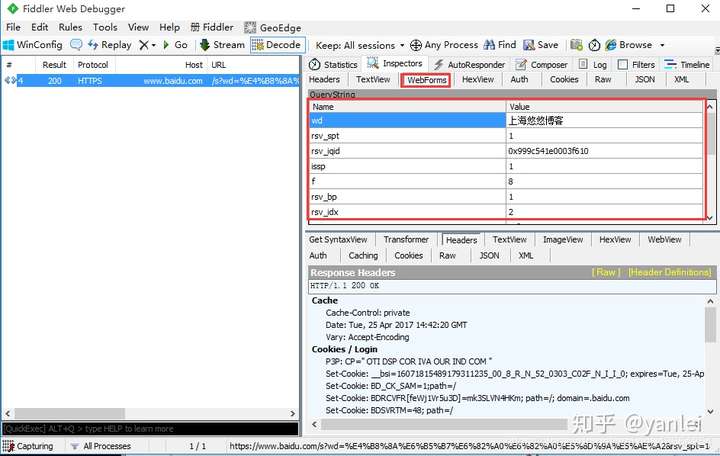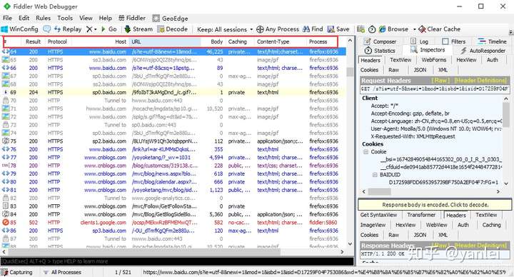 1.用fiddler抓包时候,打开百度网页:https://www.baidu.com