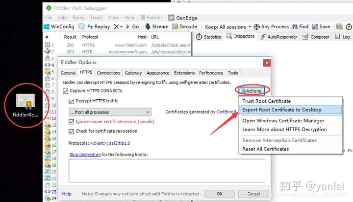 5.点Actions按钮,Export Root Certificate Desktop按钮导出到桌面