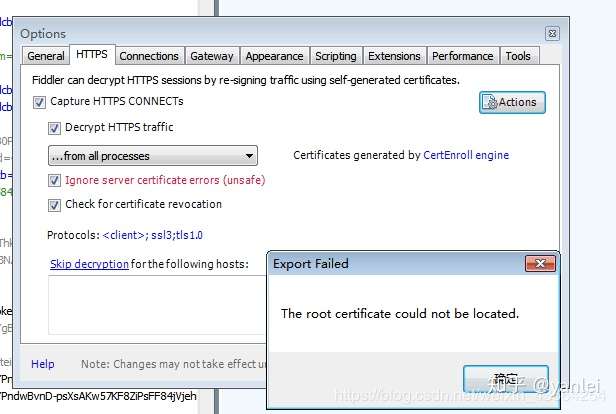 在点Actions时候出现Export Failed:The root certificate could not be located.最近有很多小伙伴在fiddler导出证书的时候,遇到无法导出的问题,收集了几种解决办法,供参考。