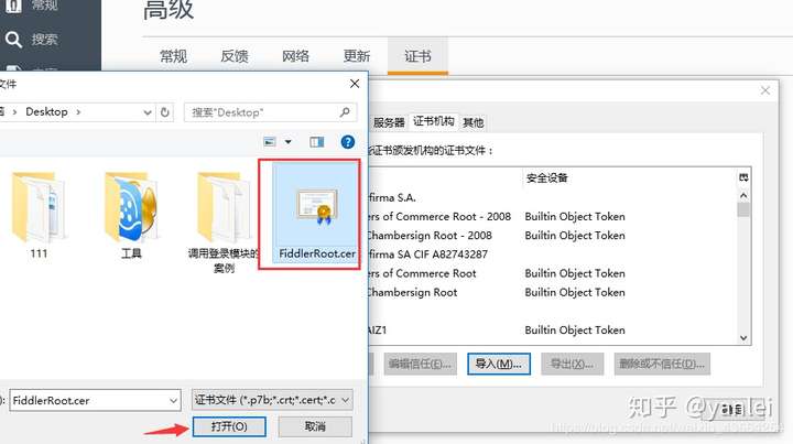 4.安装好证书后,按照1.1章节Fiddler抓包1-抓firefox上https请求的浏览器导入证书就行了(弄好之后,重启电脑就OK了)