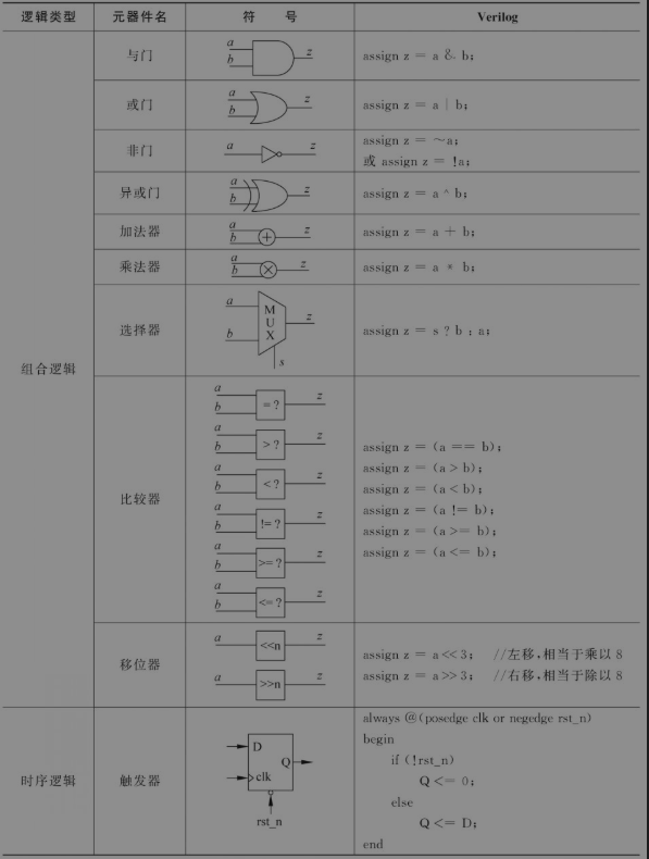 - 基本元器件中不包括除法,原因是除法的实现不同于乘法,它受到被除数、除数、商的数值范围的限制,有时需要用到迭代等复杂方法实现,还有分母为0等异常情况需要报告,所以并不属于Verilog中常用的直接运算方式。