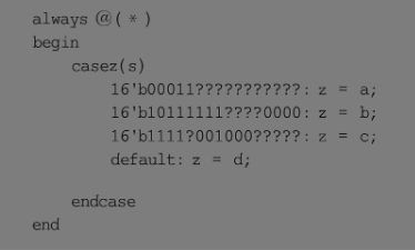 - *在这里表示省略描述。综合器在看到这种省略描述后,会自动在always块中寻找与输出z相关的输入信号,自动填入敏感列表中。