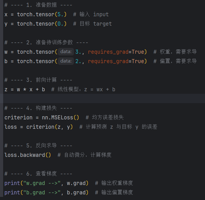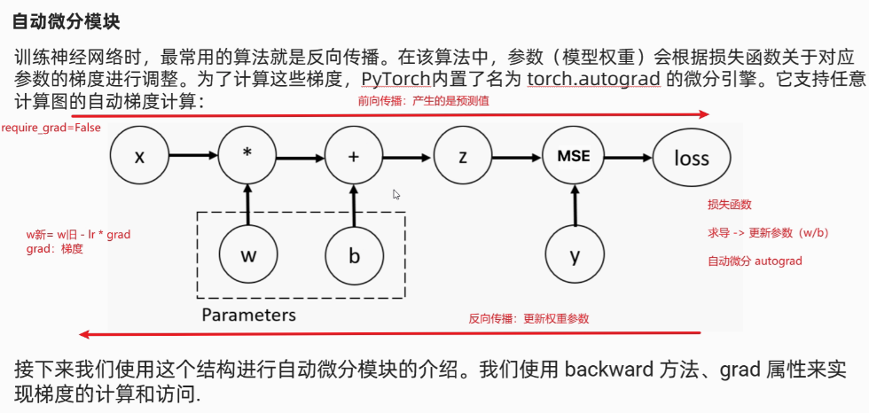 也就是说,PyTorch中,我们使用自动微分模块:自动计算神经网络中损失函数对模型参数的梯度,从而实现反向传播和参数更新。就是用到一个方法:backward()