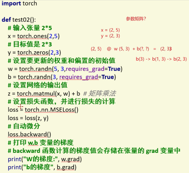 b = torch.randn(5, requires_grad=True) # 广播机制:(1,5) -> (2,5),实现和y的相加