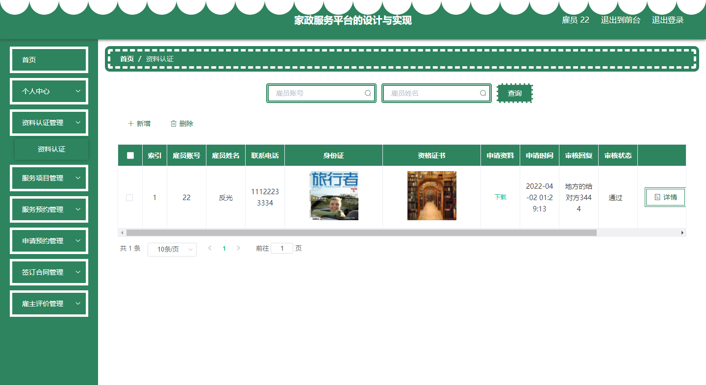 通过信息信息的处理完全依赖人工进行操作,会耗费大量的人工成本,特殊是面对大量的数据信息时,传统人工操作不仅不能对数据的出错率进行保证,还容易出现各种信息资源的低利用率与低安全性问题。更有甚者,耽误大量的宝贵时间,尤其是对信息的更新,归纳与统计更是耗财耗力的过程。所以电子化信息管理的出现就能缓解以及改变传统人工方式面临的处境,一方面可以确保信息数据在短时间被高效处理,还能节省人力成本,另一方面可能确保信息数据的安全性,可靠性,并能够搭建信息信息的快速检索与修改操作,这些优点是之前的旧处理模式无法比拟的。因此家政服务平台为信息信息的管理模式的升级与改革提供了重要的窗口。