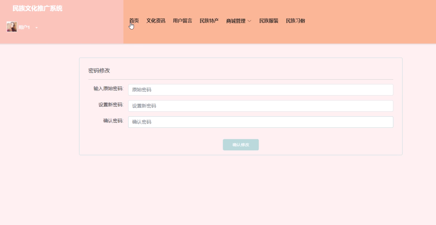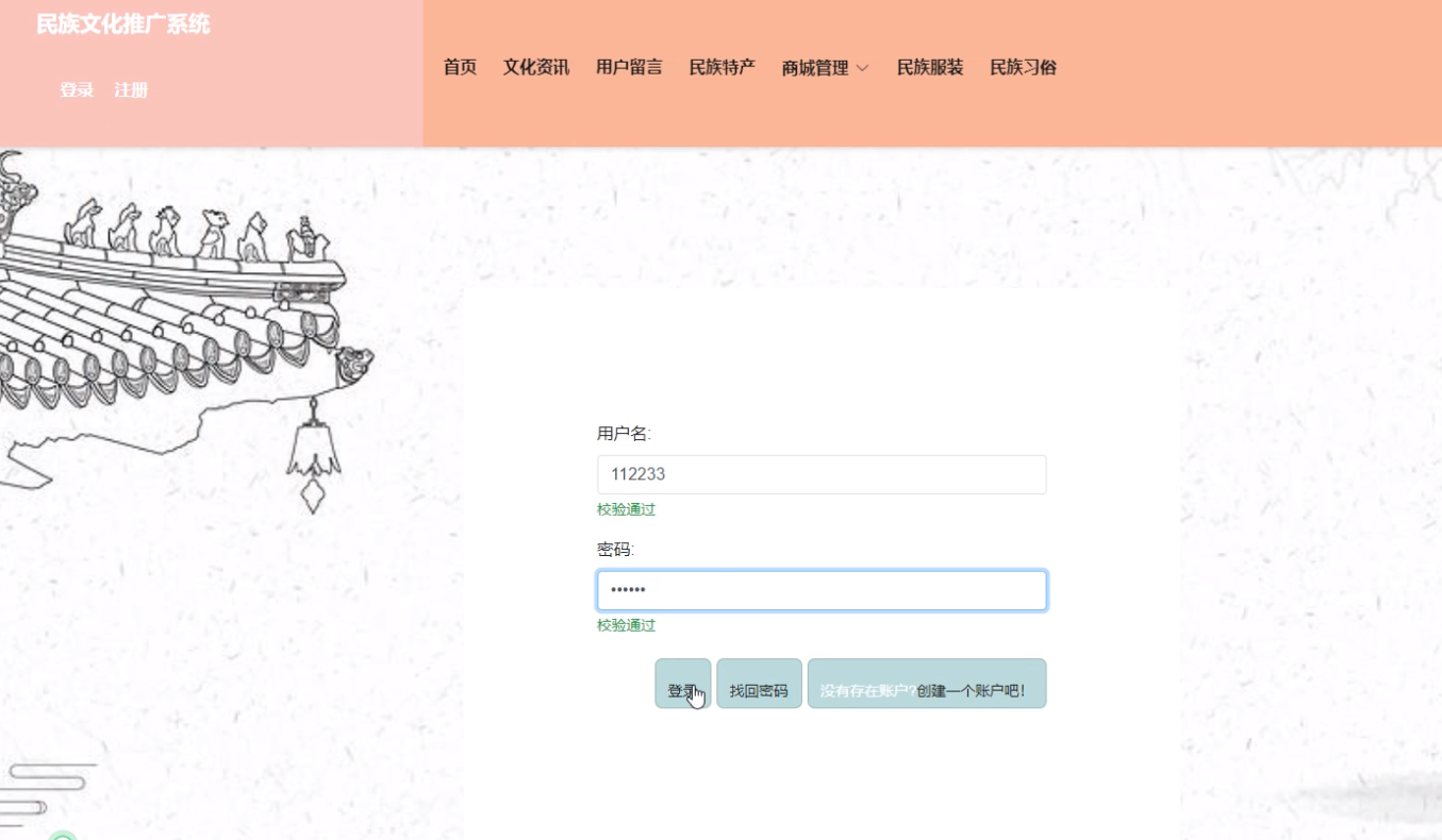 The ethnic culture promotion system based on Spring Boot and Vue aims to showcase and promote rich ethnic cultural resources in a digital and networked form through technological means. The system will leverage the powerful backend development capabilities of Spring Boot and the ease and efficiency of Vue front-end framework to achieve functions such as integration, classification, display, and interactive communication of ethnic cultural resources. Users can learn about the cultural characteristics, historical backgrounds, traditional customs, and other aspects of different ethnic groups through this system. They can also participate in cultural exchanges, share personal insights and experiences, and promote mutual understanding and integration of different ethnic cultures through this system.