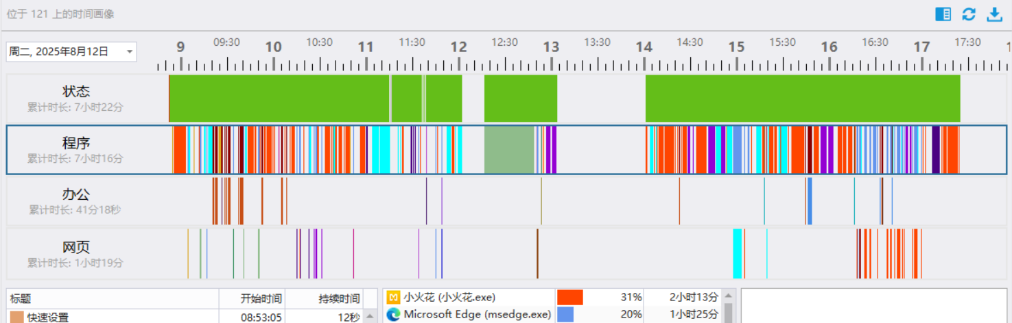 - 时间画像:分析员工的工作习惯,识别 “高频摸鱼时段” 或 “效率峰值”,优化排班与任务分配。