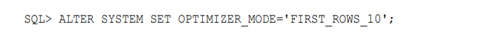 When you set the OPTIMIZER_MODE value to FIRST_ROWS_n, the database optimizes with a goal of best response time to return the first n rows, where n equals 1, 10, 100, or 1000.