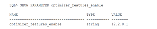 The parameter accepts one of a list of valid string values corresponding to the release numbers, such as 11.2.0.2 or 12.2.0.1. You can use this parameter to preserve the old behavior of the optimizer after a database upgrade. For example, if you upgrade Oracle Database 12c Release 1 (12.1.0.2) to Oracle Database 12c Release 2 (12.2.0.1), then default value of the OPTIMIZER_FEATURES_ENABLE parameter changes from 12.1.0.2 to 12.2.0.1.