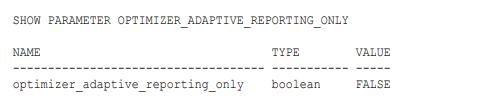 • OPTIMIZER_ADAPTIVE_REPORTING_ONLY is FALSE (default)
