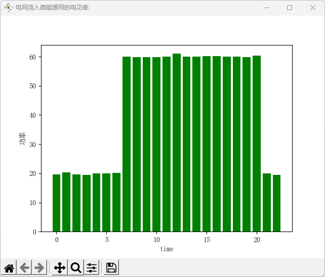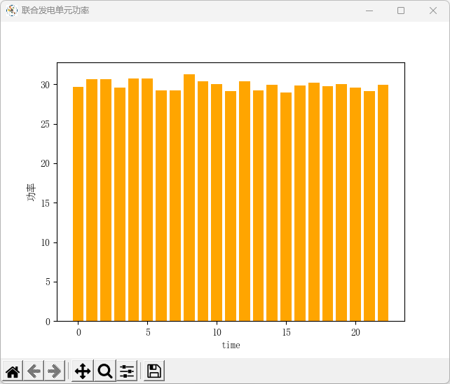 说明:该柱状图展示了联合发电单元在各时段的输出功率。行看到功率基本维持在 29–31 之间,说明发电单元运行稳定,为体系提供了基础的电力支撑,奏效保障了负荷需求。