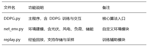 在众多深度强化学习算法中,深度确定性策略梯度(Deep Deterministic Policy Gradient, DDPG)因其能够处理连续动作问题而被广泛应用于能源管理与控制优化。本文针对微能源网中光伏与风电出力的不确定性,构建了多能源耦合的仿真环境,并基于 DDPG 算法设计了一种智能能量管理与优化策略。通过对比分析和仿真结果验证,本文提出的方法在降低系统运行成本、提高可再生能源利用率以及增强系统鲁棒性方面具有明显优势。