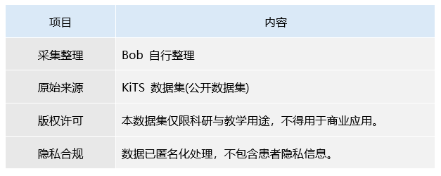 (4)使用限制(数据集仅限科研与教学用途,不得用于商业医疗诊断。)
