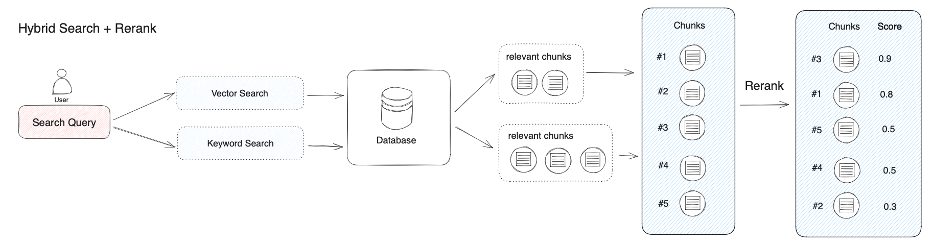 在大多数文本搜索的场景中,首先的是确保潜在最相关结果能够出现在候选结果中。向量检索和关键词检索在检索领域各有优势,混合搜索正是结合了这两种搜索技术的优点,同时弥补了两方的缺点。