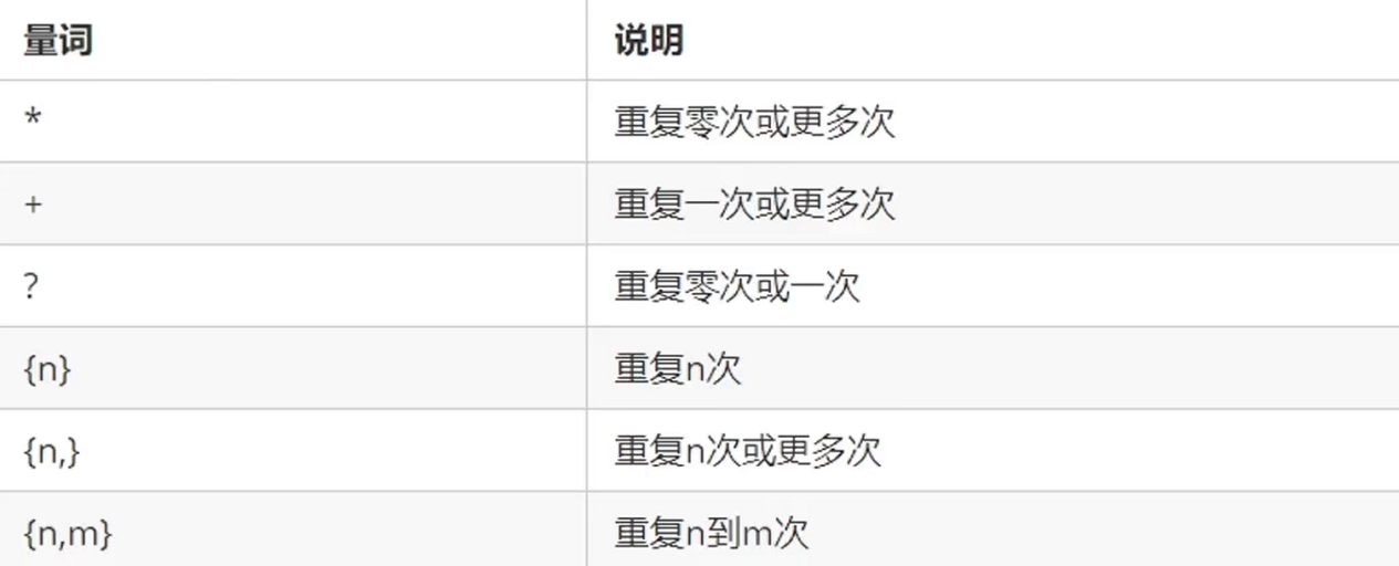 注意:量词写在某个表达式的后面,表示前一个表达式可以出现的次数。