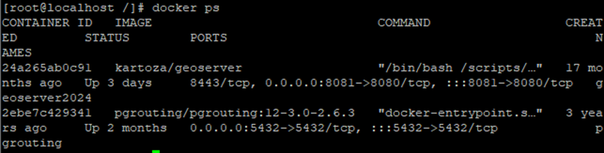原服务器采用DOCKER环境运行geoserver 和 pgrouting容器。