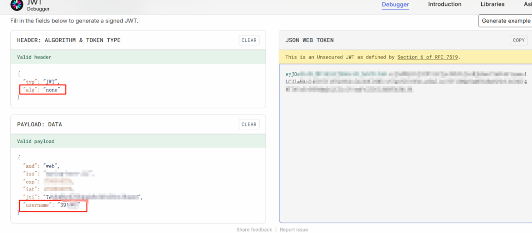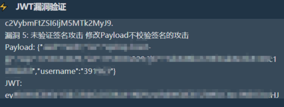 接着来解密下JWT,发现Payload字段有一个username参数,有越权的可能性。但还需要解决JWT签名检验问题,不然改了Payload也无意义。