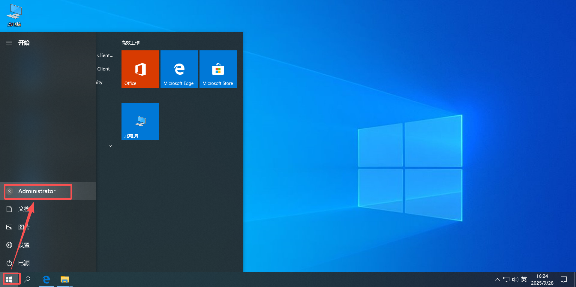 a. 查看账户名可在开始菜单中查看,如下:(解决办法:在“控制面板”——“用户账户”中修改本地账户为英文)