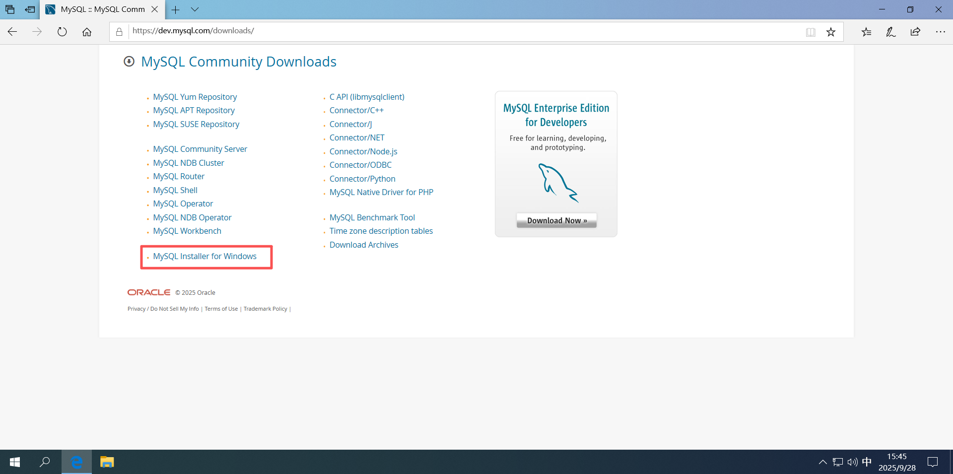 3)在弹出的页面点击“MySQL Installer for Windows”。