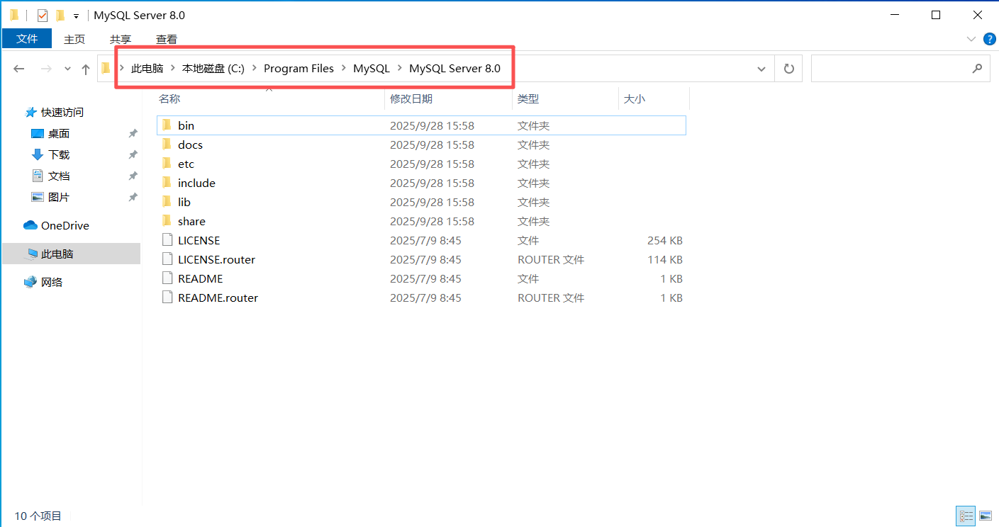 1)找到MySQLServer的安装路径,一般默认安装路径为“C:\Program Files\MySQL\MySQL Server 8.0”,如下: