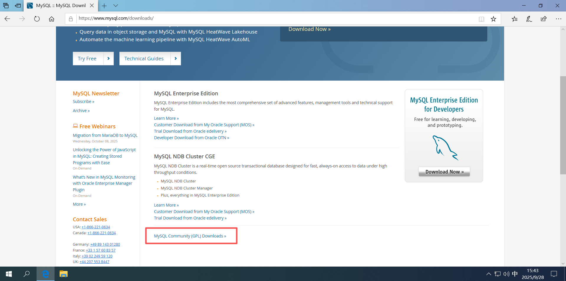 2)在弹出的页面找到“MySQL Community(GPL)Downloads”并点击。