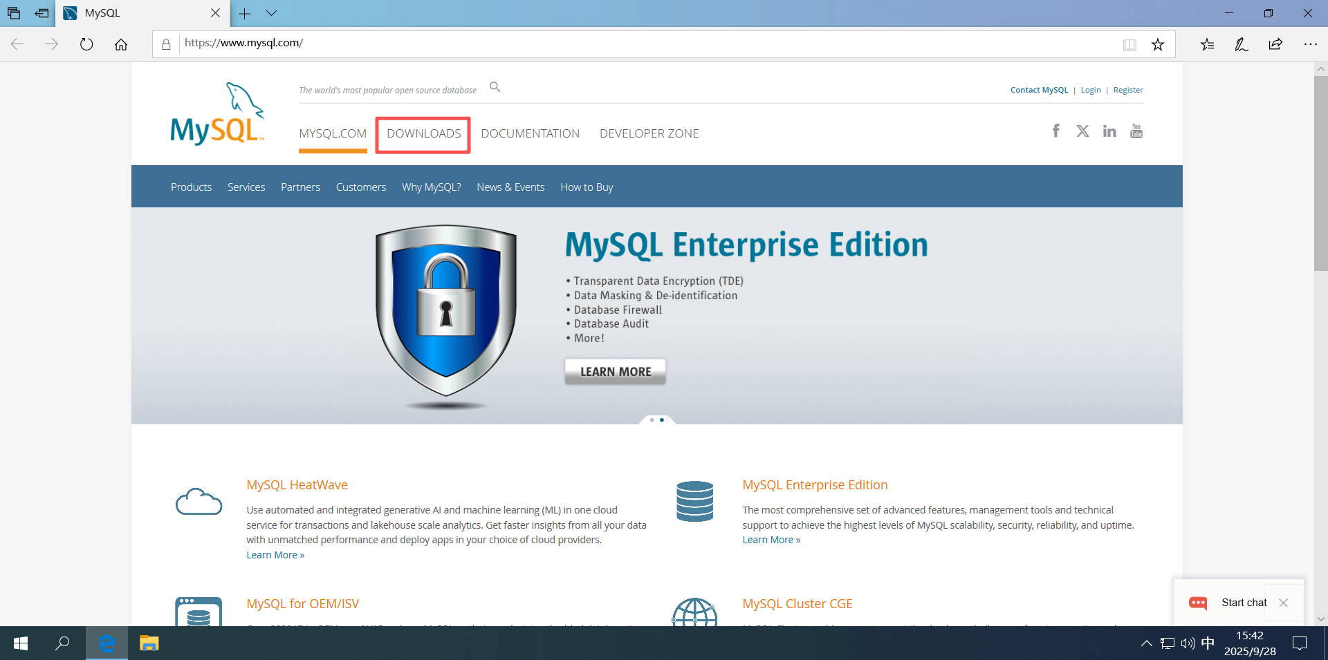 1)使用浏览器打开MySQL官网(https://www.mysql.com/)如下,点击“Download”。