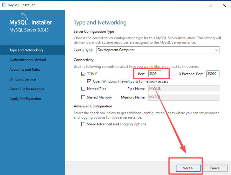5)在弹出的页面配置端口等信息后(一般情况下端口不用配置,除非3306端口已经被占用才需要配置),点击“Next”。