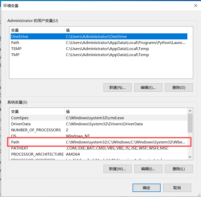 2)依次点击“此电脑”——“属性”——“高级系统设置”——“环境变量”,打开环境变量的配置页面,双击红框标记的“Path”。