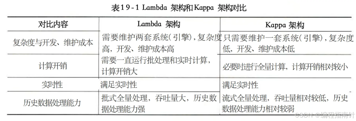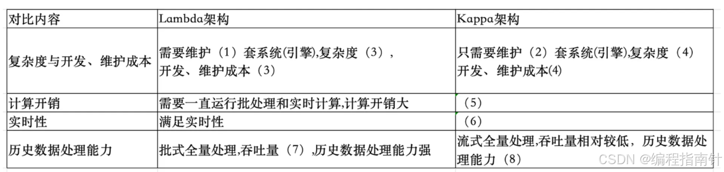 请根据Lambda架构和Kappa架构特点,填写以下表格。
