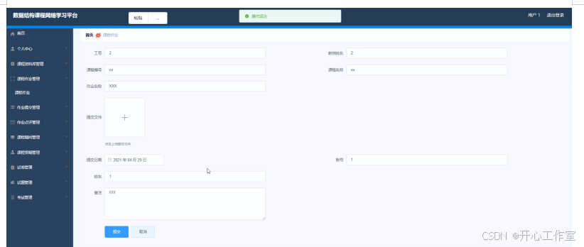 用户可以对课程作业信息进行添加修改删除操作。界面如下图所示: