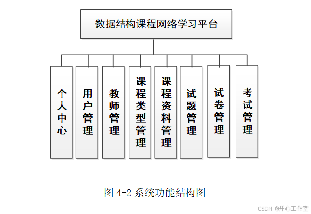 通过本数据结构课程网络学习平台有管理员,教师,用户。管理员能力有个人中心,用户管理,教师管理,课程资料管理,课程类型管理,试题管理,试卷管理,考试管理。教师可以发布课程资料,考试信息。用户可以查看考试资料,能够参加考试。因而具有一定的实用性。
