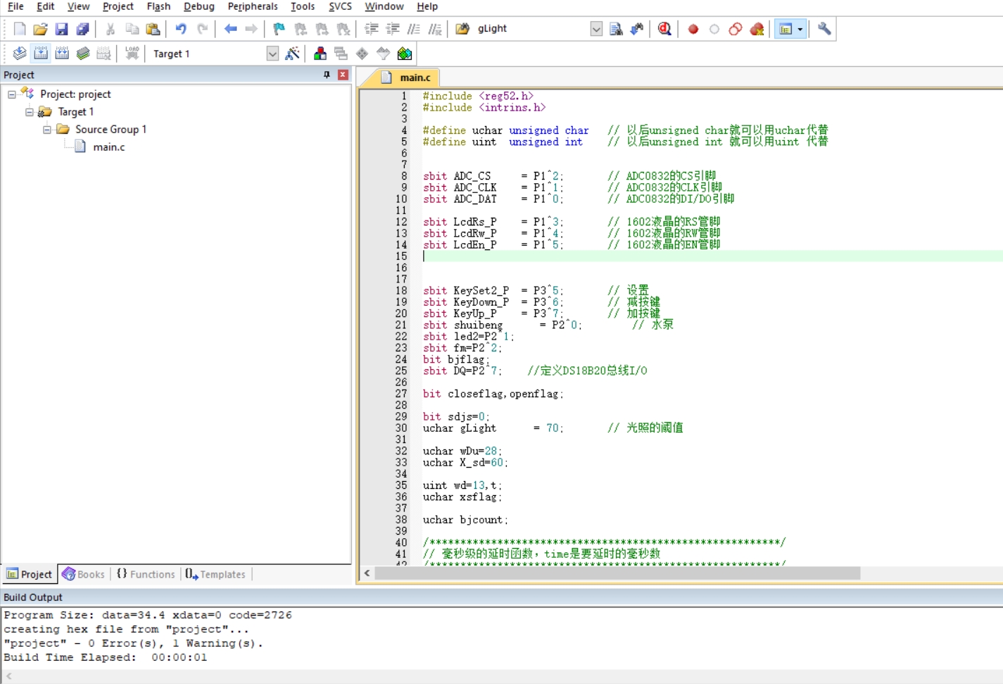 本项目是基于51单片机的土壤湿度、温度及光照检测系统是一种常见的农业环境监测方案,主要能力包括实时材料采集、阈值报警和自动控制。