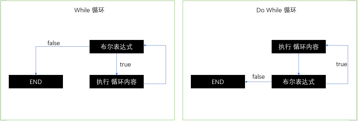 对于while循环,如果不满足布尔表达式,则不会进入循环。但是对于do while循环而言,即便不满足布尔表达式也至少会执行一次。