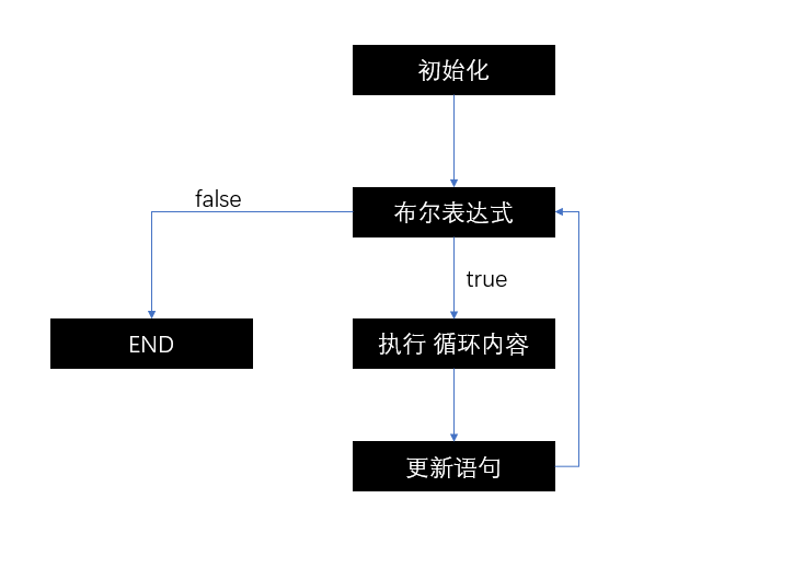 for(初始化 ; 布尔表达式 ; 更新语句) {