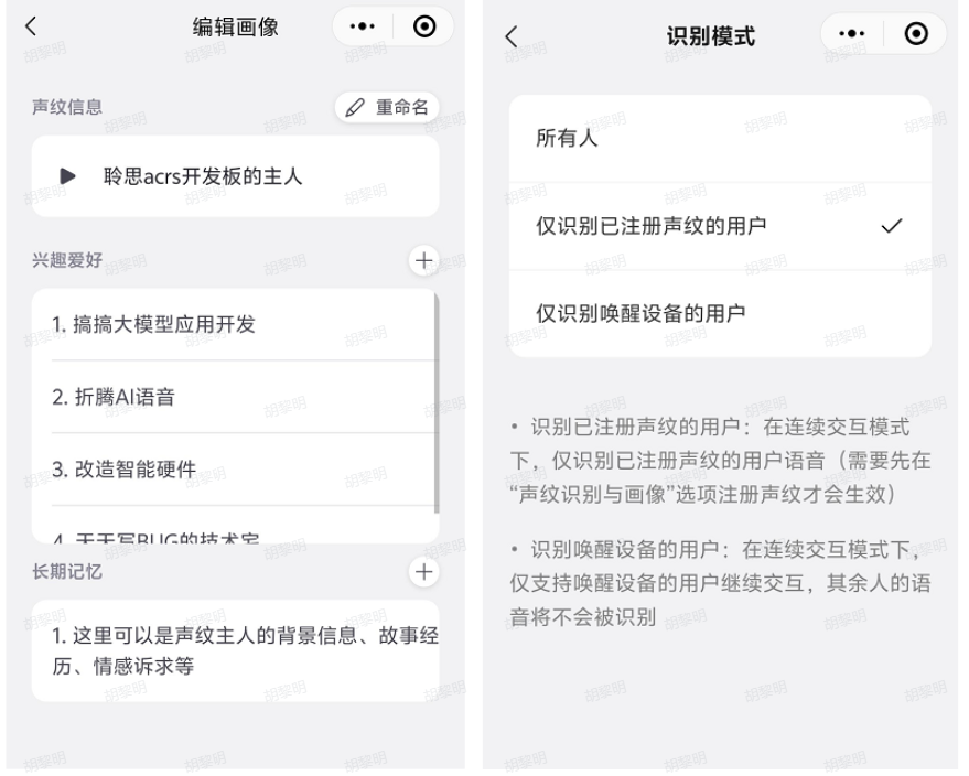 识别已注册声纹的用户:在连续交互模式下,仅识别已注册声纹的用户语音,如果只想让AI语音只回复指定人可以选择这项