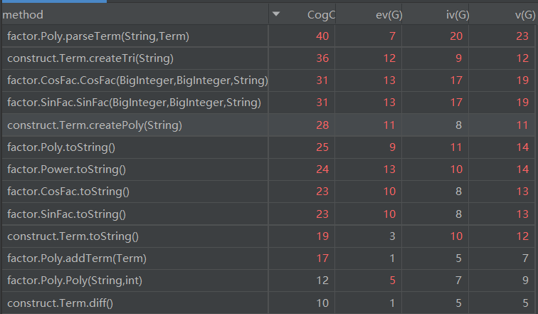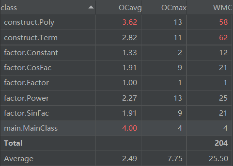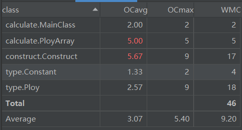 同时Ploy类由于构造方法中有许多判断语句,因此平均方法复杂度也较高。