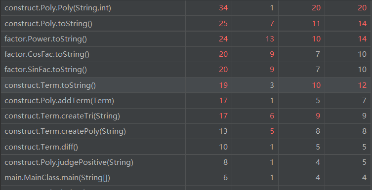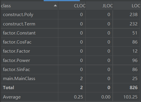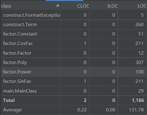 可以看出第二次作业相比于第一次作业代码量增加很多,但主要是集中在Ploy类和Term类中,这两个类因为是不同因子之间的关系即加减和乘除,所以有很多构造和合并方法,代码行数较多。