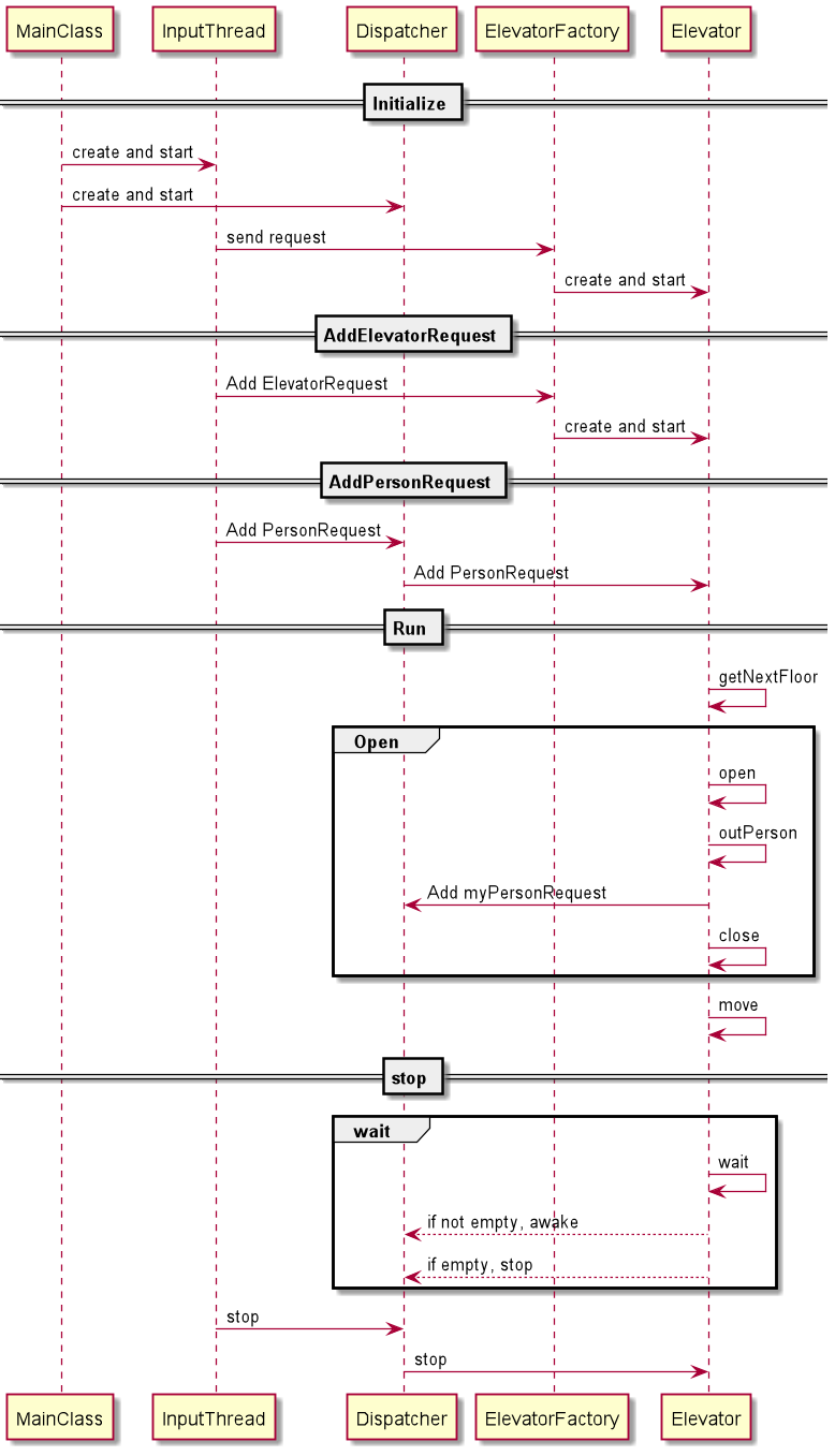 同时笔者增加了分派器Dispatcher作为输入队列的消费者,每个电梯的等待队列的生产者,总体的锁与第一次作业相差无几,只是分派器既充当消费者也充当生产者。
