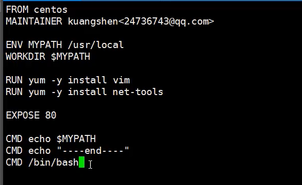 8、CMD : 指定这个容器启动的时候要运行的命令,只有最后一个会生效且可被替代