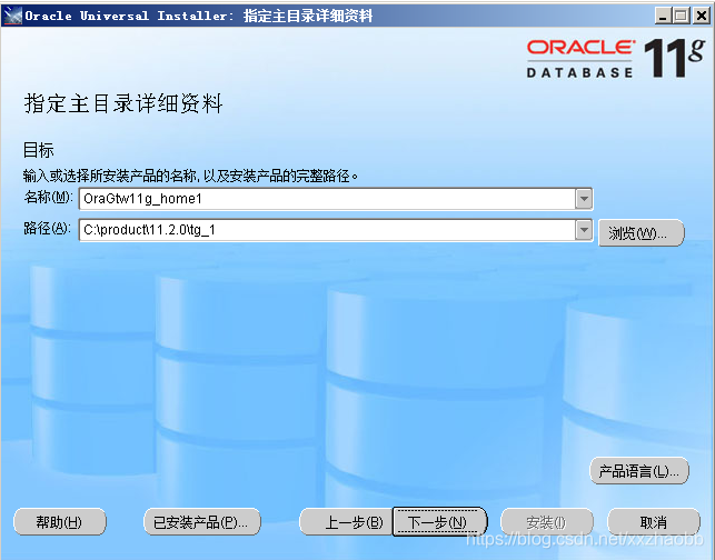 注意,这里的截图和实际安装有点出入,时间安装的时候,下图的名称不是oragwt11g_home1,而是ORA_11g_home1,覆盖了Oracle_home,也就是和Oracle安装在一个目录了。 Oracle的MOS上有文章介绍,不建议这样安装,因为这样安装,可能会把Oracle的一些补丁给覆盖掉了。