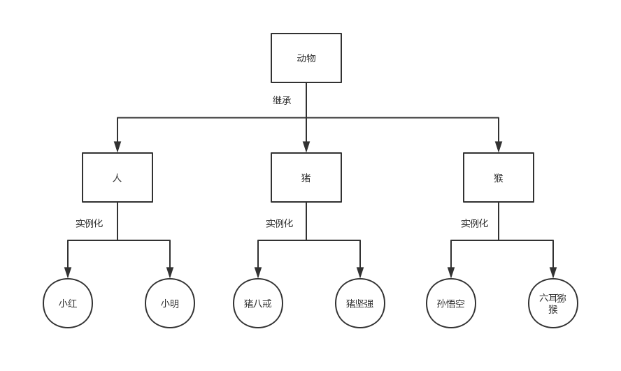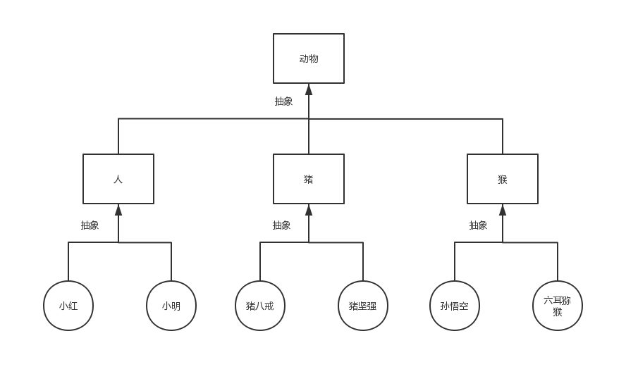要找出类与类之间的继承关系,需要先抽象,再继承。抽象即总结相似之处,总结对象之间的相似之处得到类,总结类与类之间的相似之处就可以得到父类,如下图所示