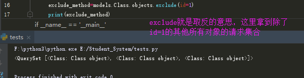 <4> exclude(**kwargs): 它包含了与所给筛选条件不匹配的对象