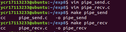分别开启两个终端,分别运行 pipe_send 和 pipe_recv :