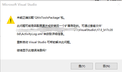 因为我直接在VS里面下载QT Visual Tools安装过程没有问题,但是重启之后“提示未能正确加载QT包”,如下图
