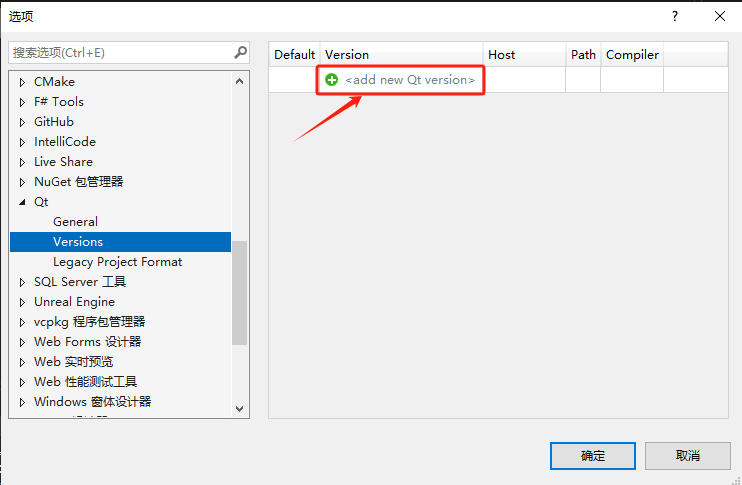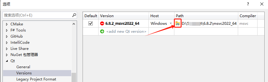然后找到qt的版本位置(工具->选项->QT->Version 或者 拓展->Qt VS Tools -> Versions),然后点击添加