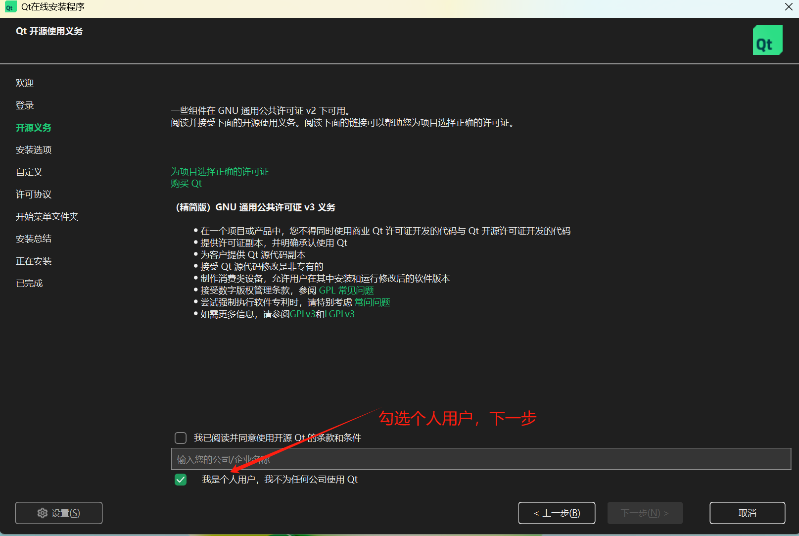 3、下载完成后双击应用程序进行安装(可以选择个人版安装,注册一个QT账号即可)