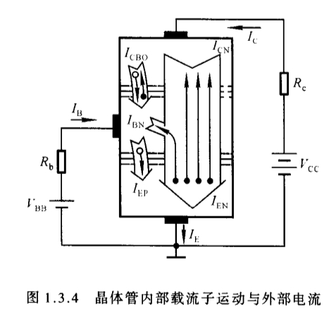最终IBN和ICN成比例,即若IEN上去100个自由电子,2个被基区复合并在基极处重新产生[1],剩下98个继续上去漂移到集电区(在电场力作用下,载流子的运动称为漂移运动)