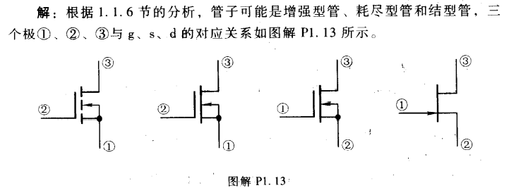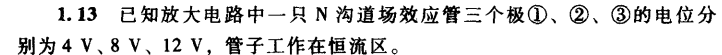 1.13 (场效应管的类型及工作状态的判断)(答案有问题?增强型耗尽型不就是MOS管吗?)